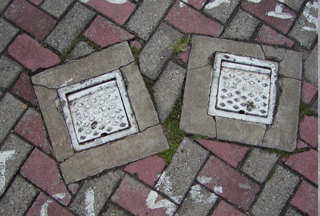 I used the images of different metal covers to address such concerns. The images are powerful when collected them and framed them all together.