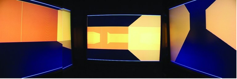 2 Spatial systems – virtual and physical. 4 Spaces – Each screen represents an individual virtual space and therefore three virtual spaces. The different positions of screens form another physical space to the viewer as well.