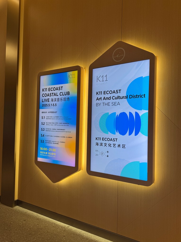 K11 Ecoast is composed of three distinct zones: a young luxury mall, a family-oriented retail space, and a cultural mall designed by David Chipperfield. Each had its own identity, yet the challenge was to create a unified wayfinding system that respected their differences while guiding visitors effortlessly across the site.